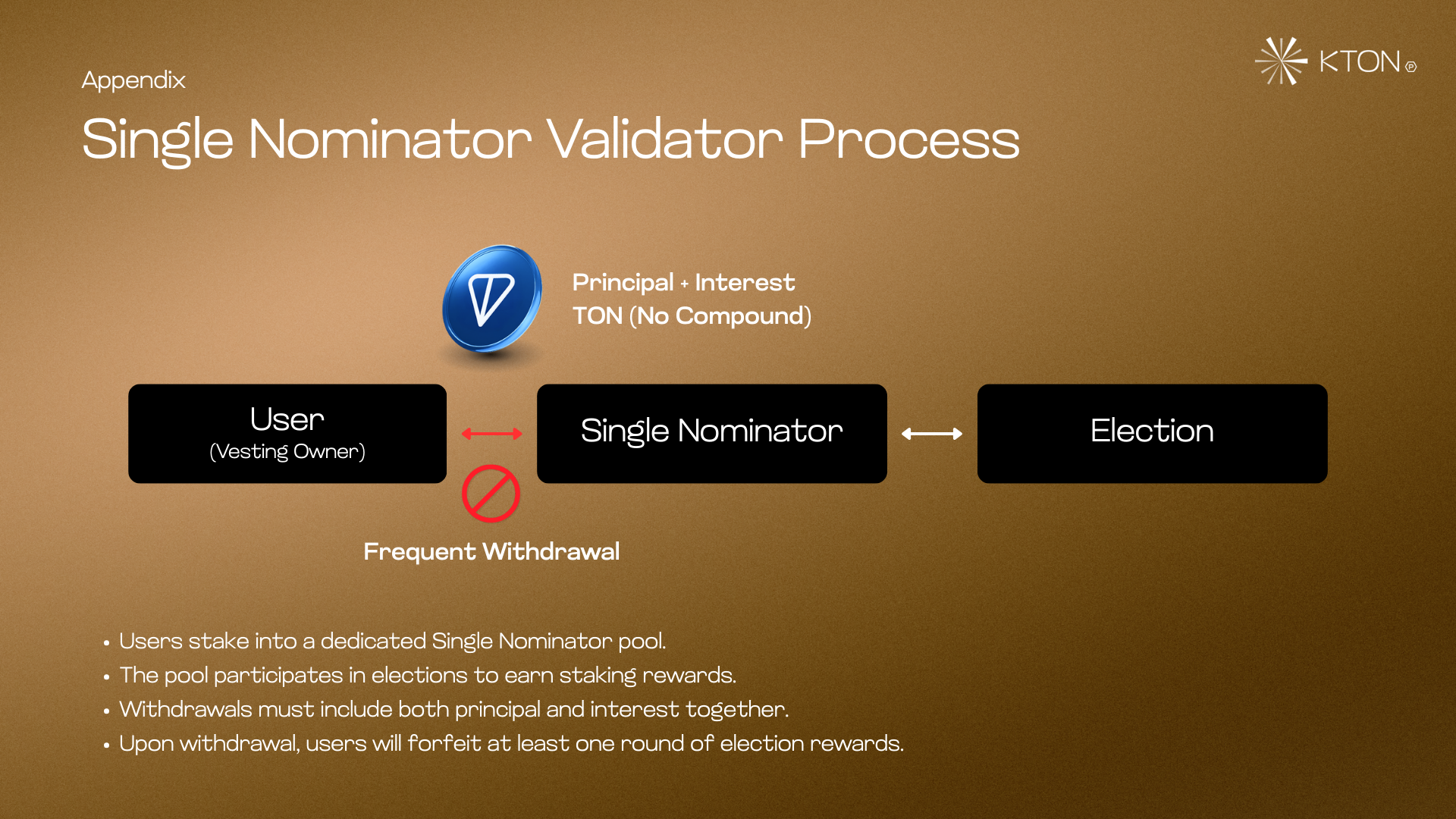 Built on TON Core V2 smart contracts, KTON Premium combines the scalability of pooled liquid staking with the simplicity of single nominators.